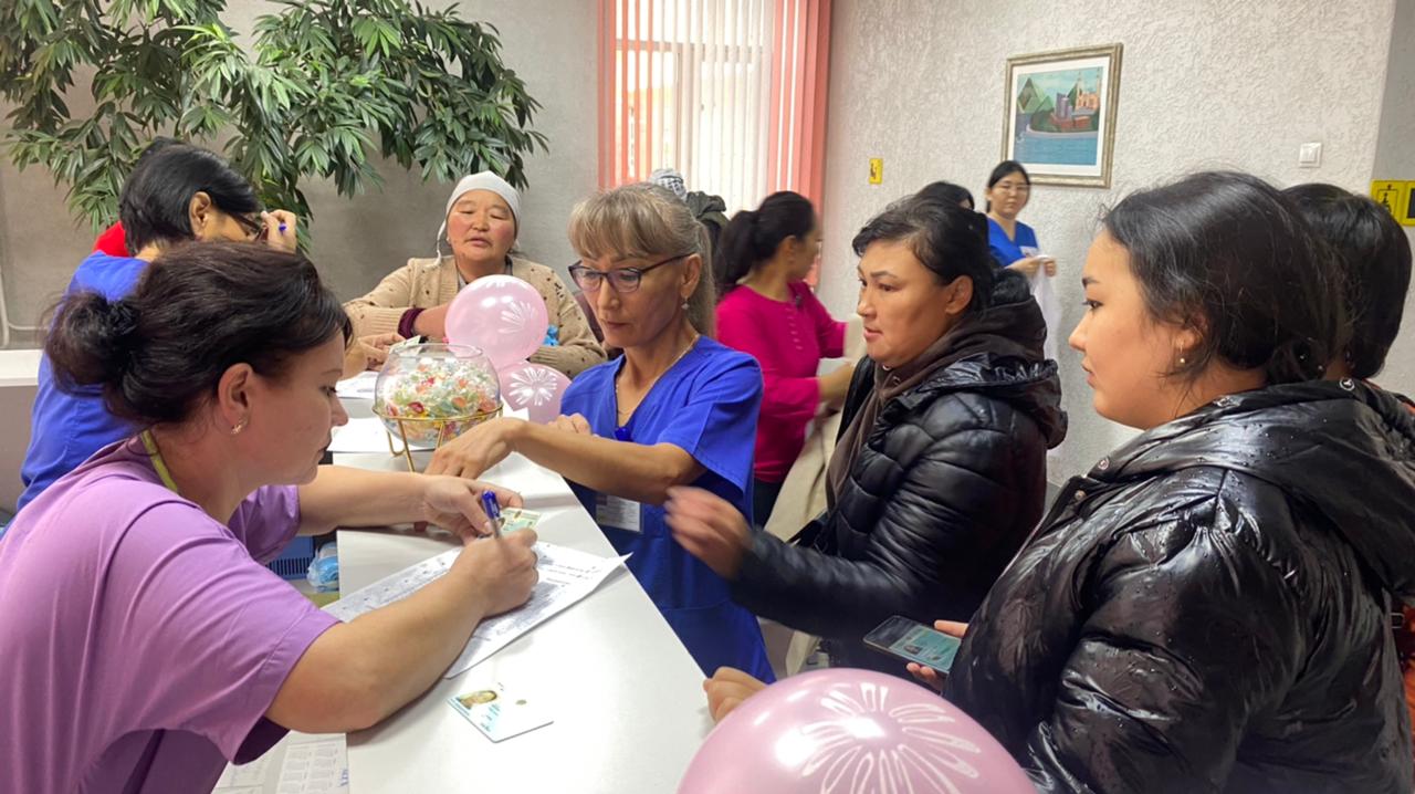 Бір-екі сағаттың ішінде Үлкен Нарын тұрғындары жалпы қан анализін тапсырды, кеуде қуысының рентгенографиясынан, сүт бездері мен жамбас мүшелерінің ультрадыбыстық зерттеуінен, маммографиядан өтті, сондай-ақ гинеколог пен маммологтың кеңесін алды.