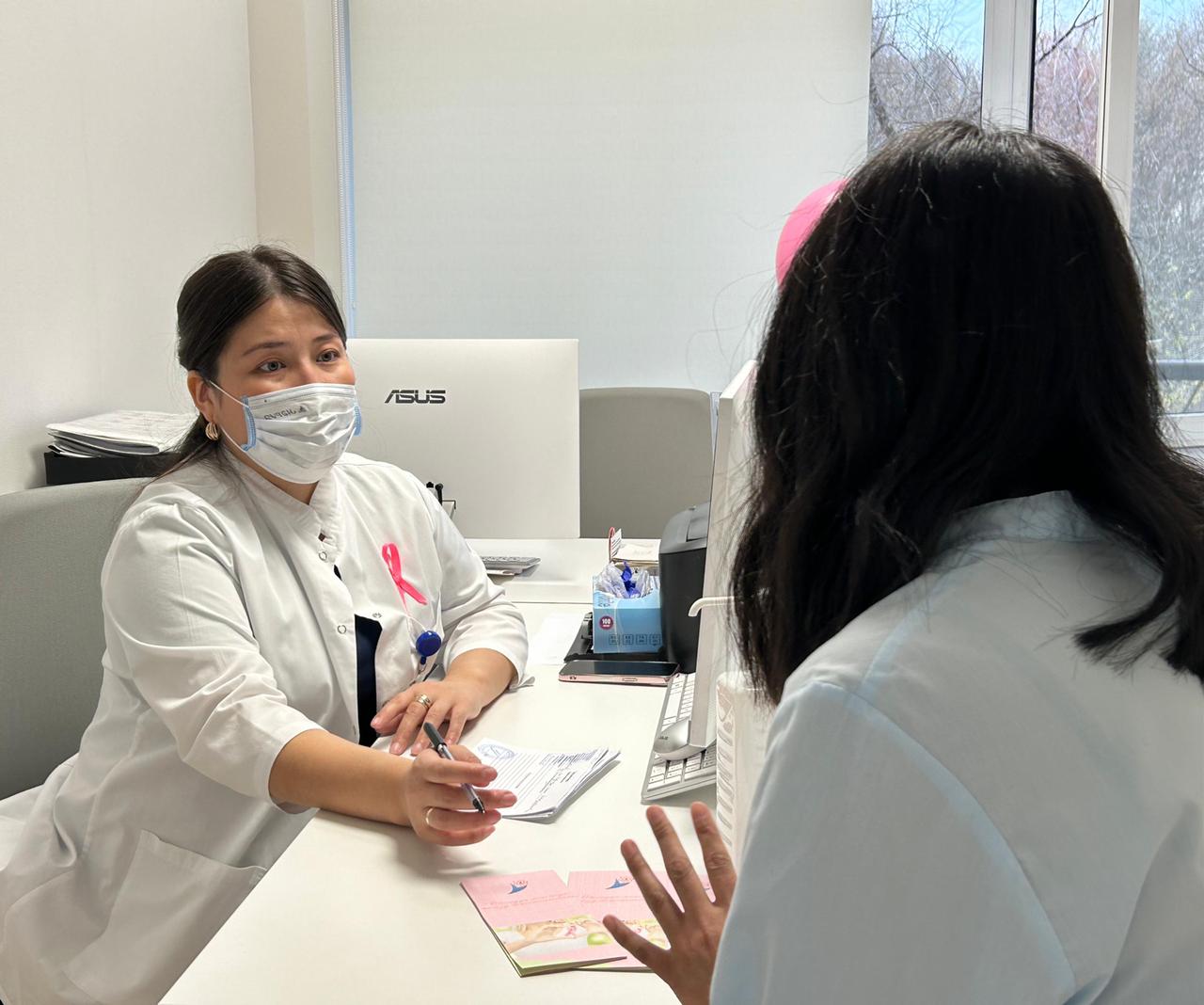 «Қызғылт қазан» сүт безі обыры туралы хабардар болу айлығы аясында ШҚО көпсалалы онкология және хирургия орталығының онколог-маммологтары қызметкерлерге кеңес беру үшін «Үлбі» қалалық аумақтық халыққа әлеуметтік қызмет көрсету орталығына барды.