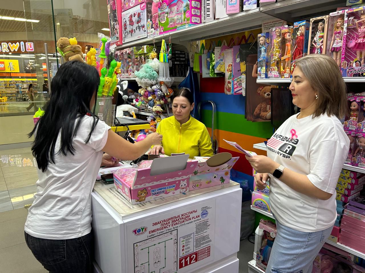 В одном из крупных торговых центров Усть-Каменогорска специалисты Онкоцентра побеседовали с женщинами, рассказали об опасности рака молочной железы, призвали проходить регулярные обследования и скрининги. Врачи рекомендуют женщинам до 40 лет проходить ежегодно УЗИ молочных желез, а после 40 лет — один раз в два года маммографию. Не менее важно ежемесячно проводить самообследование груди. Ведь именно ранняя диагностика злокачественных новообразований позволяет добиться наилучших результатов лечения.
