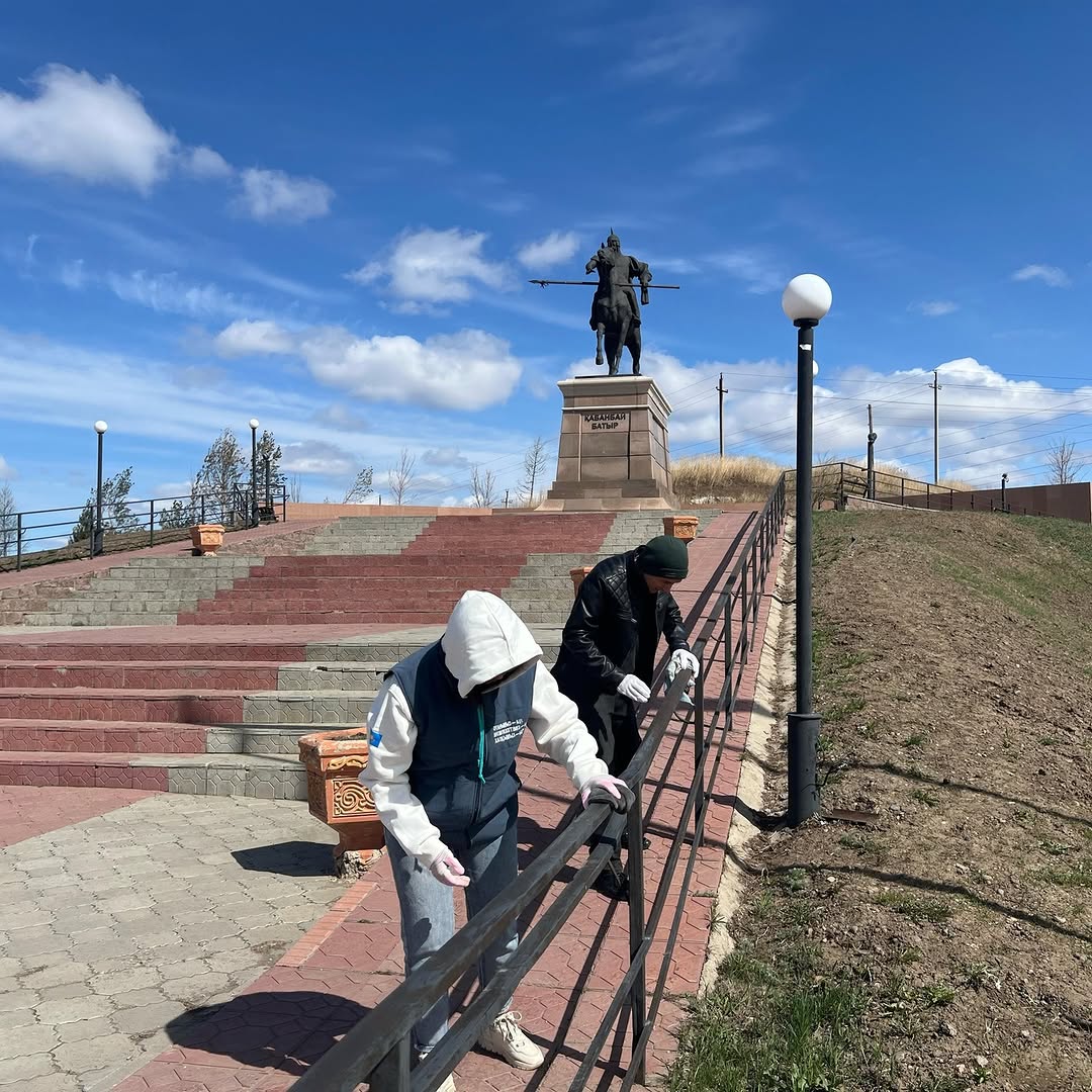 В рамках Международного Дня памятников и исторических мест была организована уборка территории и постамента скульптуры легендарного полководца Кабанбай Батыра, которая установлена на въезде в Усть-Каменогорск по Семейской трассе.
